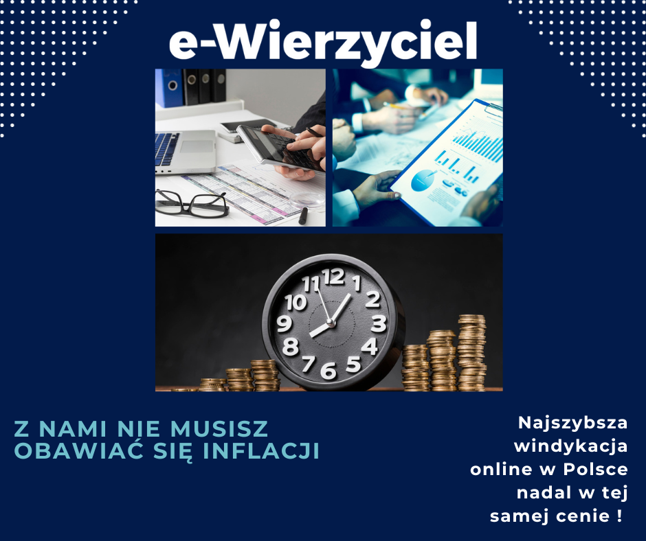 Gwarantujemy, że opłata za najszybszą windykację online w Polsce pozostaje bez zmian, uwolniona jest od inflacji.